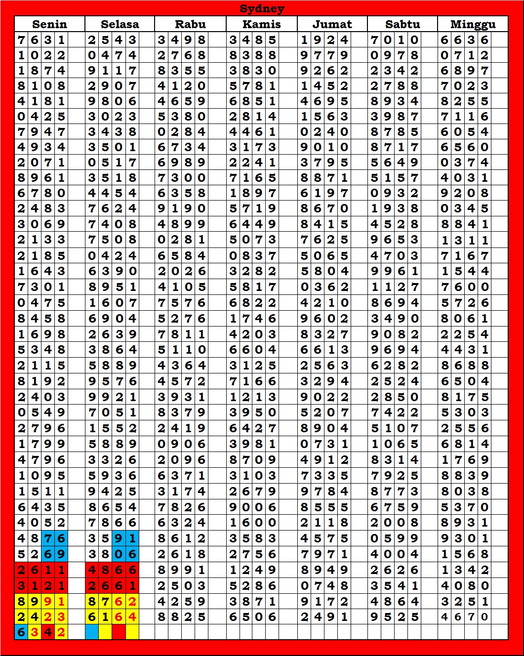 | TABEL DATA SYDNEY 6D VERSI HARIAN |