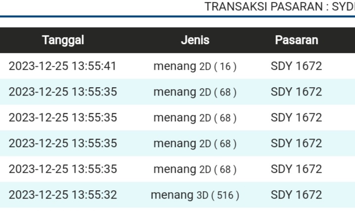 | TABEL DATA SYDNEY 6D VERSI HARIAN |