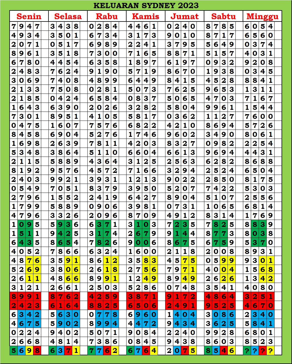 | TABEL DATA SYDNEY 6D VERSI HARIAN |