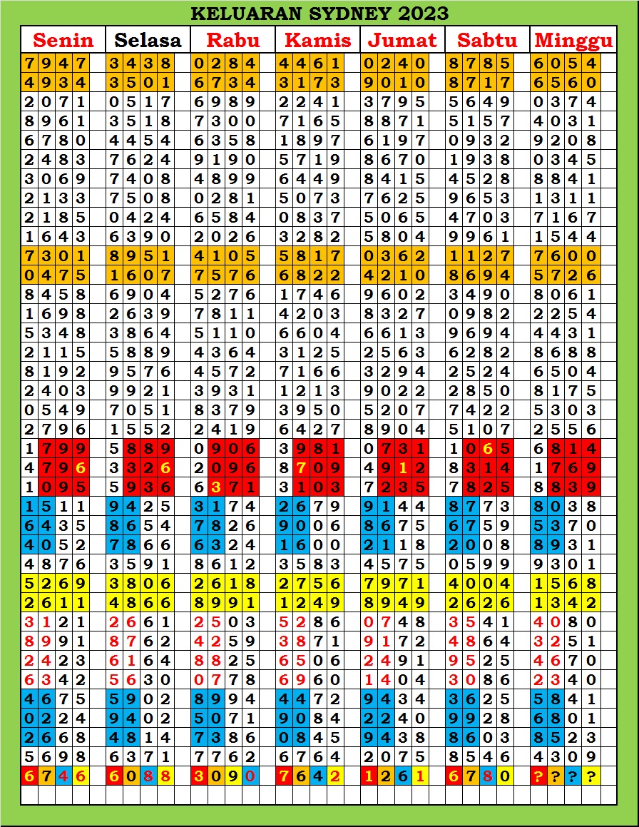 | TABEL DATA SYDNEY 6D VERSI HARIAN |