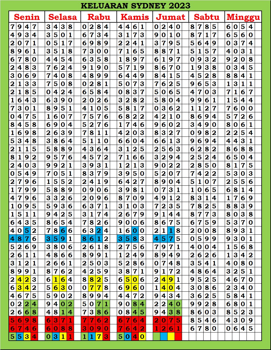 | TABEL DATA SYDNEY 6D VERSI HARIAN |