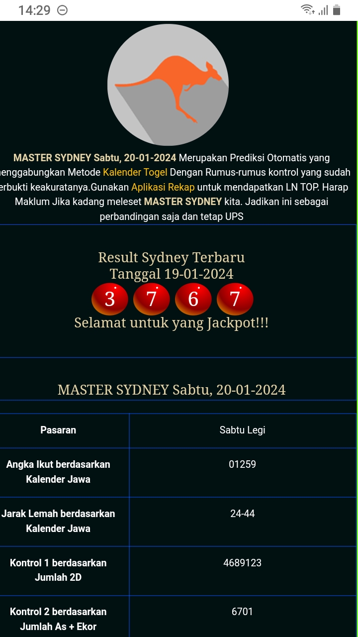 MASTER SYDNEY Kamis, 26-02-2026 Merupakan Prediksi Otomatis yang menggabungkan Metode Kalender Togel Dengan Rumus-rumus kontrol yang sudah terbukti keakuratanya.Gunakan Aplikasi Rekap untuk mendapatkan LN TOP. Harap Maklum Jika kadang meleset MASTER SYDNEY kita. Jadikan ini sebagai perbandingan saja dan tetap UPS