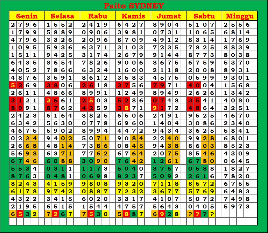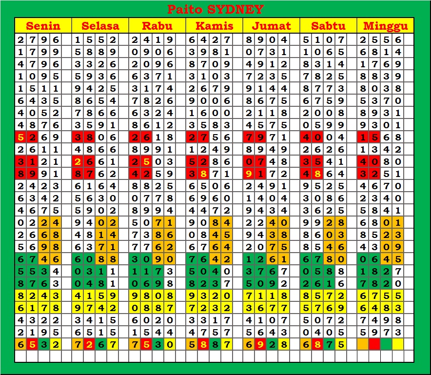 | PAITO WARNA SYDNEY 4D HARIAN |
