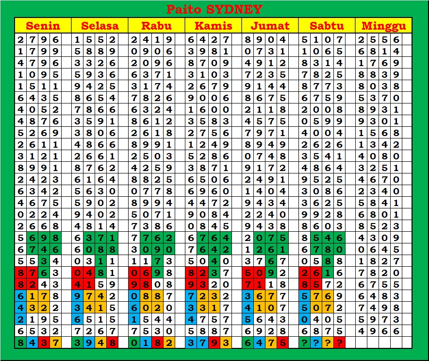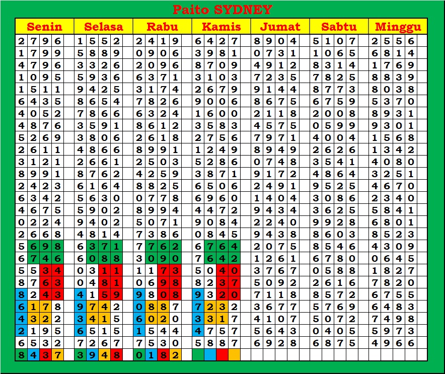 | PAITO WARNA SYDNEY 4D HARIAN |