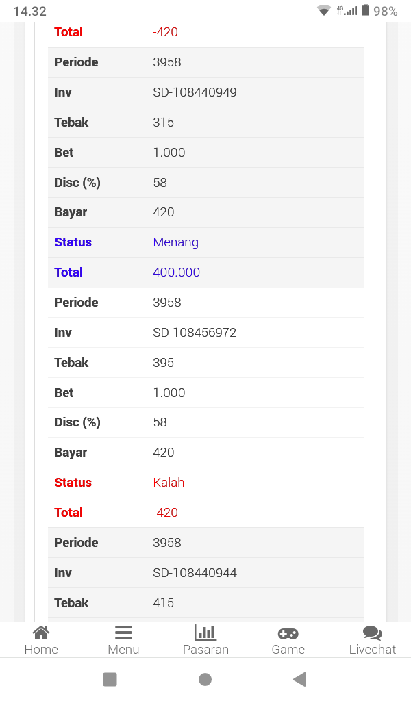 semua postingan komentar SARA, politik, saling menghujat serta saling merendahkan antara prediktor satu dengan yang lainnya jika kami lagi OL mohon maaf langsung kami hapus dan jika telah diperingatkan masih mengulang kami lock datanya
