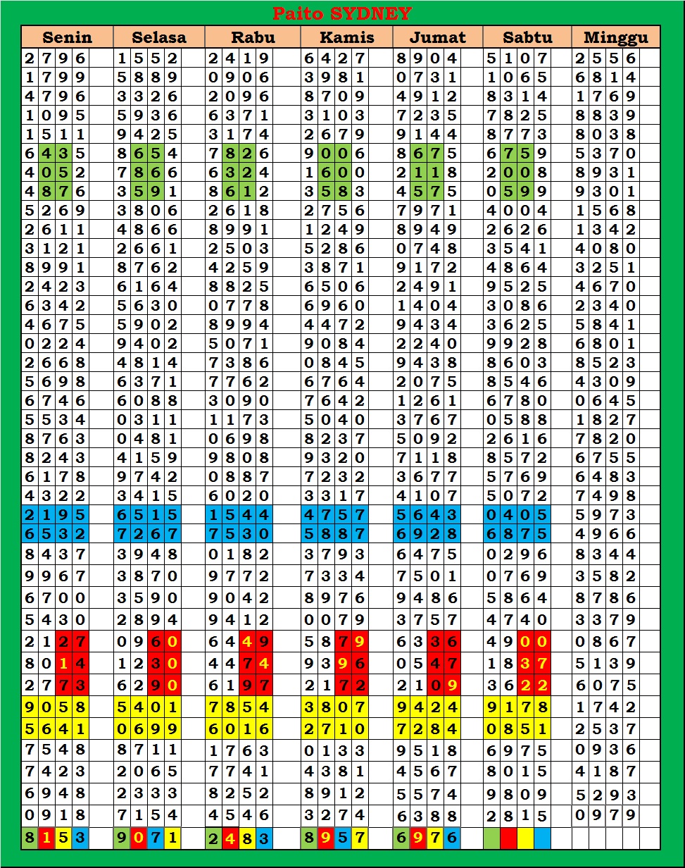 | PAITO WARNA SYDNEY 4D HARIAN |