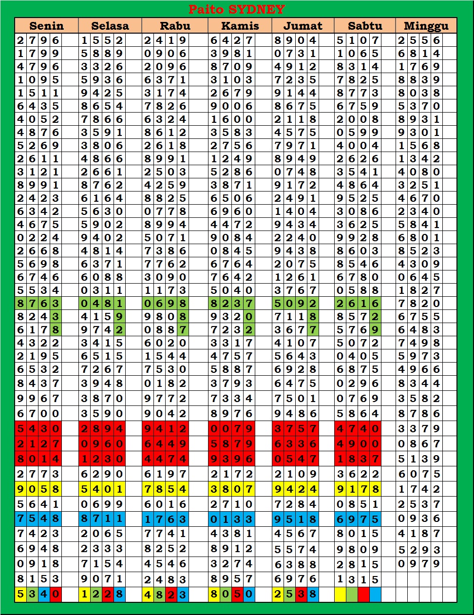 | PAITO WARNA SYDNEY 4D HARIAN |