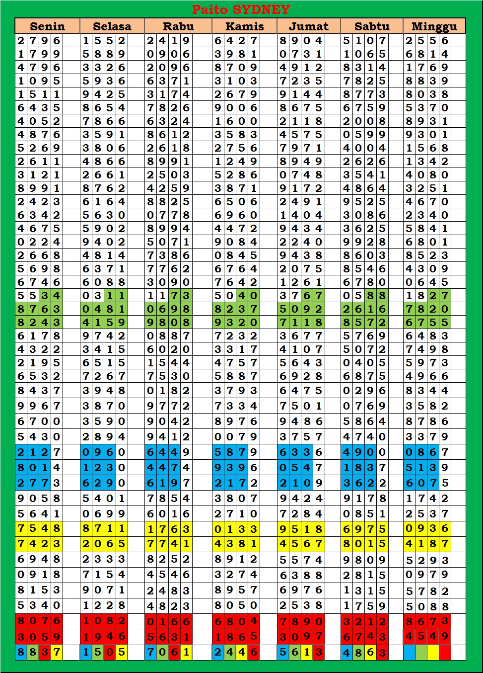 | PAITO WARNA SYDNEY 4D HARIAN |