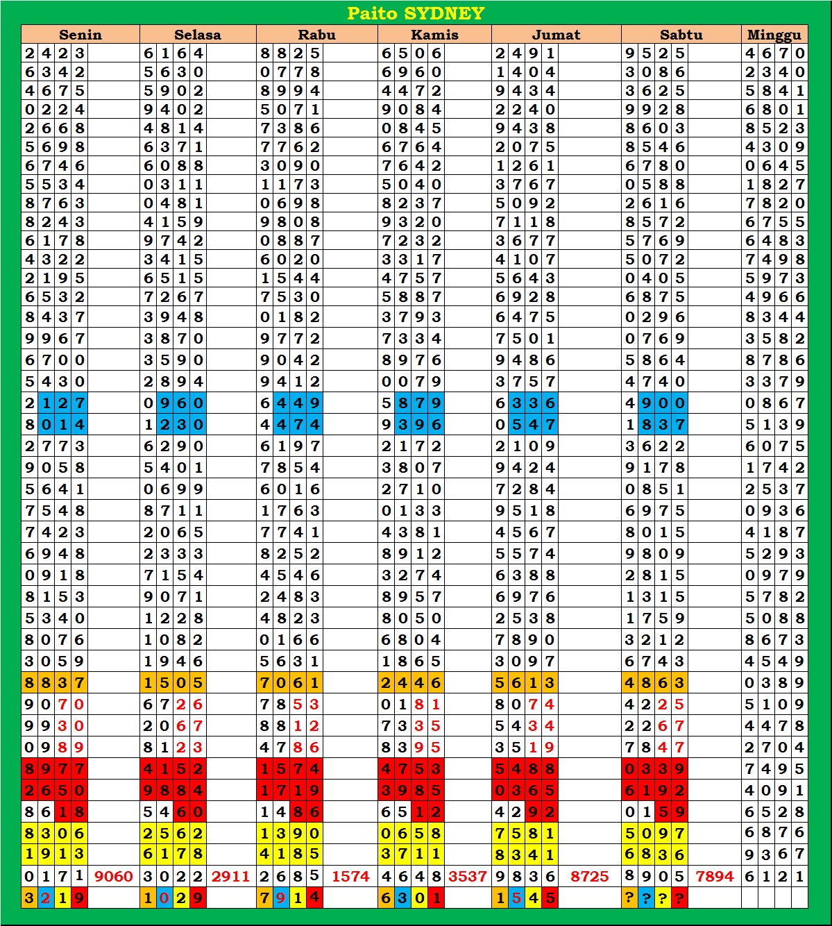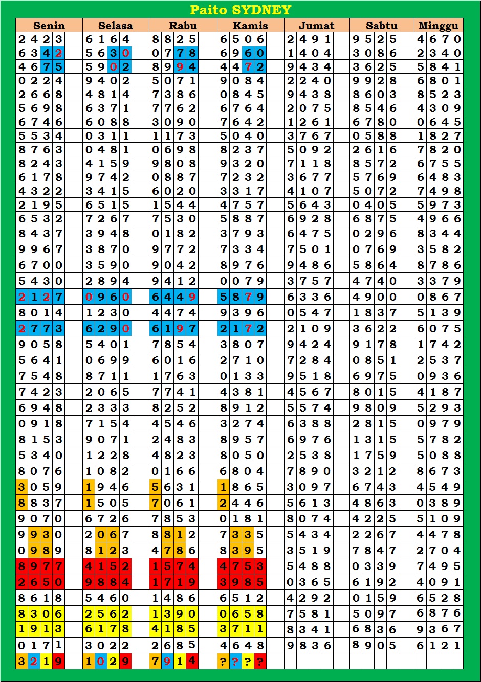 | PAITO WARNA SYDNEY 4D HARIAN |
