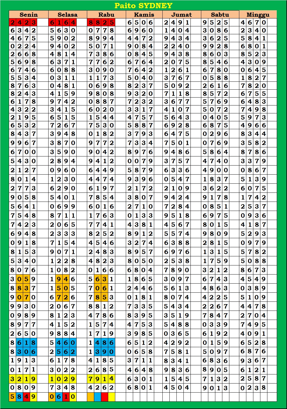 | PAITO WARNA SYDNEY 4D HARIAN |