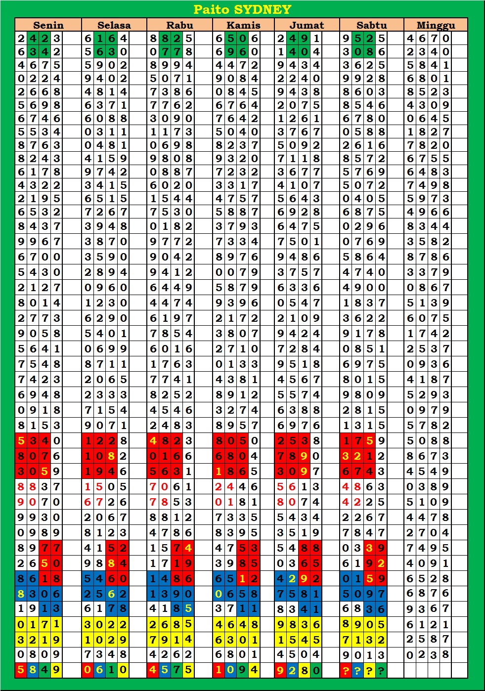 | PAITO WARNA SYDNEY 4D HARIAN |