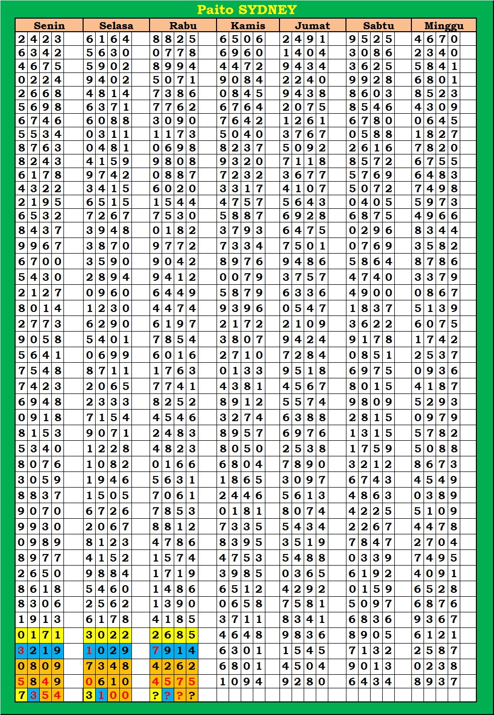 | TABEL DATA SYDNEY 6D VERSI HARIAN |