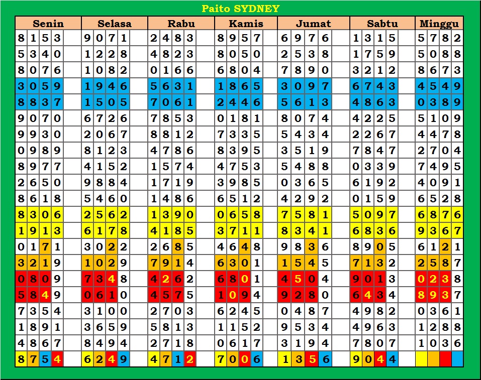 | PAITO WARNA SYDNEY 4D HARIAN |