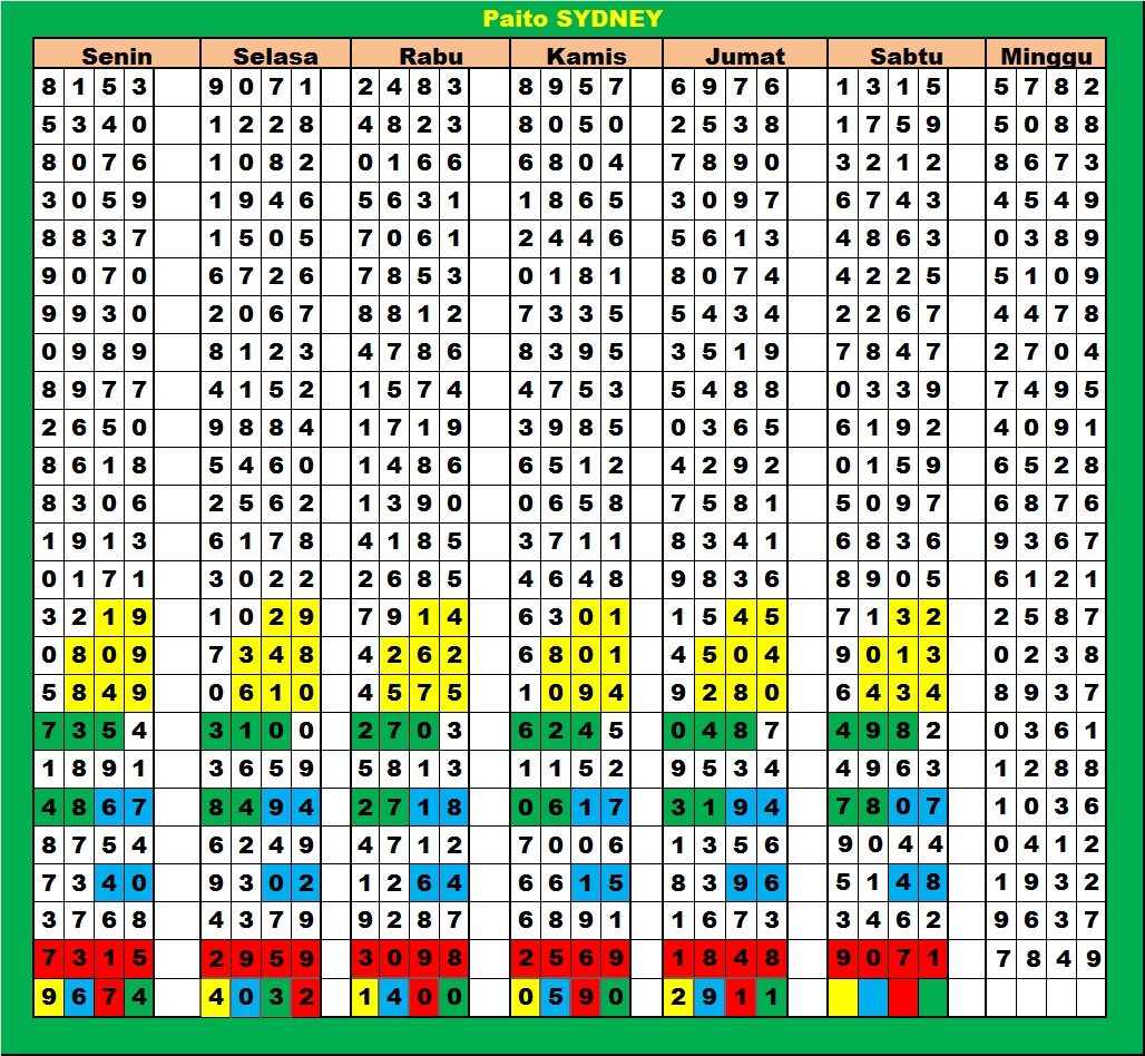 | PAITO WARNA SYDNEY 4D HARIAN |