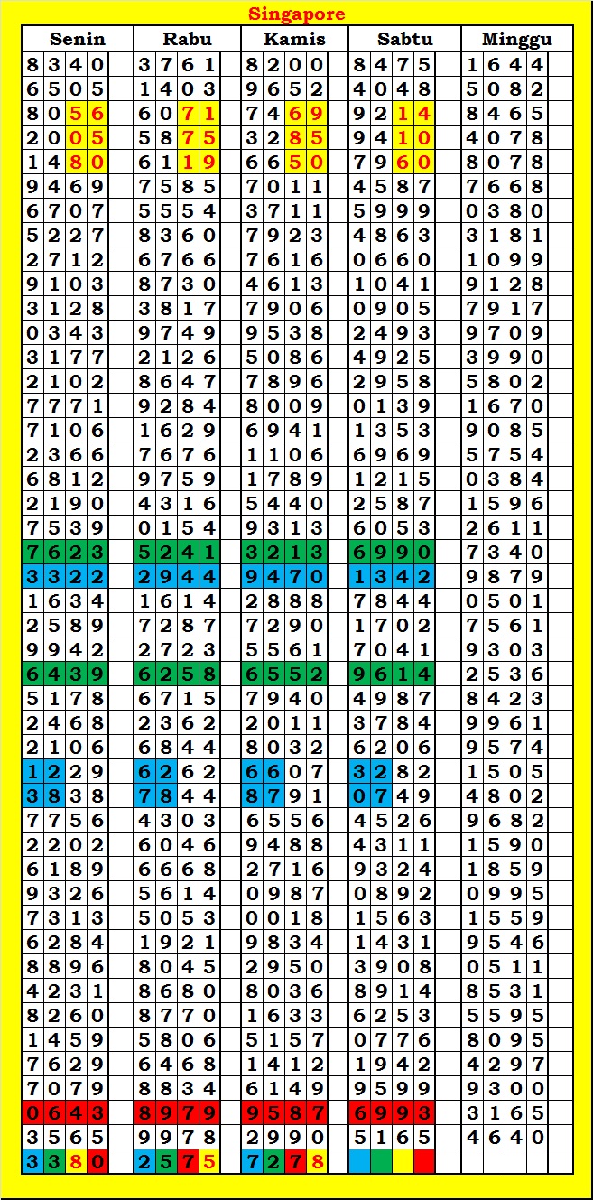 MASTER SINGAPURA Rabu, 04-03-2026 Merupakan Prediksi Otomatis yang menggabungkan Metode Kalender Togel Dengan Rumus-rumus kontrol yang sudah terbukti keakuratanya.Gunakan Aplikasi Rekap untuk mendapatkan LN TOP. Harap Maklum Jika kadang meleset MASTER SINGAPURA kita. Jadikan ini sebagai perbandingan saja dan tetap UPS