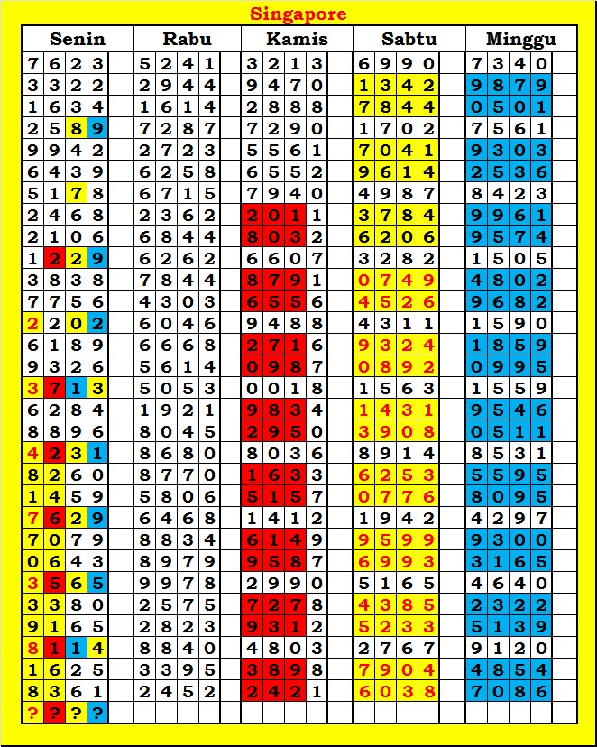 MASTER SINGAPURA Rabu, 04-03-2026 Merupakan Prediksi Otomatis yang menggabungkan Metode Kalender Togel Dengan Rumus-rumus kontrol yang sudah terbukti keakuratanya.Gunakan Aplikasi Rekap untuk mendapatkan LN TOP. Harap Maklum Jika kadang meleset MASTER SINGAPURA kita. Jadikan ini sebagai perbandingan saja dan tetap UPS