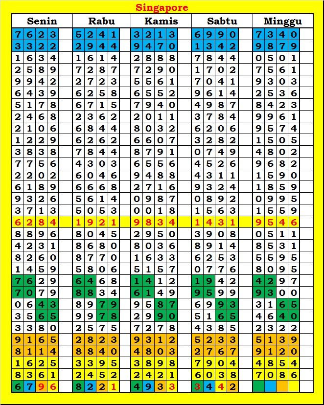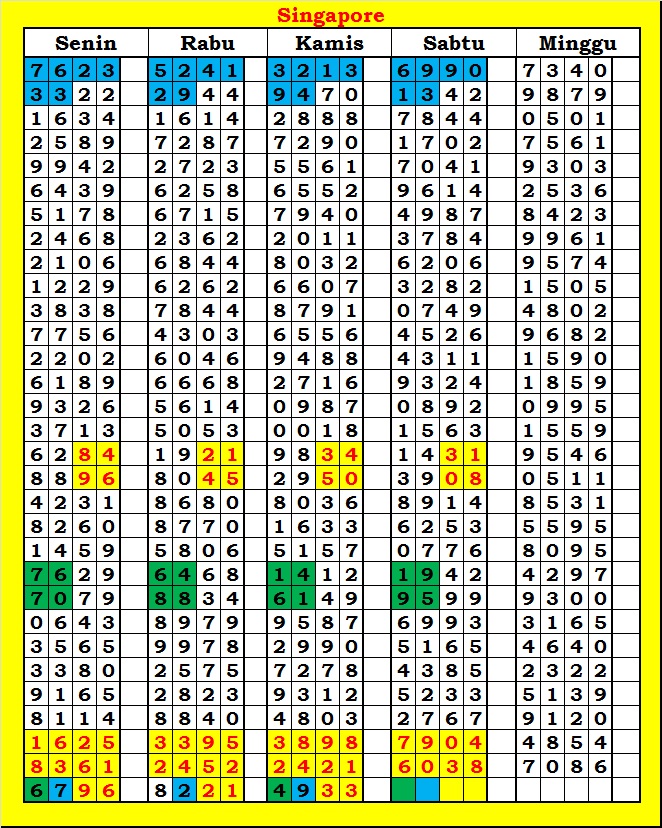 MASTER SINGAPURA Rabu, 04-03-2026 Merupakan Prediksi Otomatis yang menggabungkan Metode Kalender Togel Dengan Rumus-rumus kontrol yang sudah terbukti keakuratanya.Gunakan Aplikasi Rekap untuk mendapatkan LN TOP. Harap Maklum Jika kadang meleset MASTER SINGAPURA kita. Jadikan ini sebagai perbandingan saja dan tetap UPS