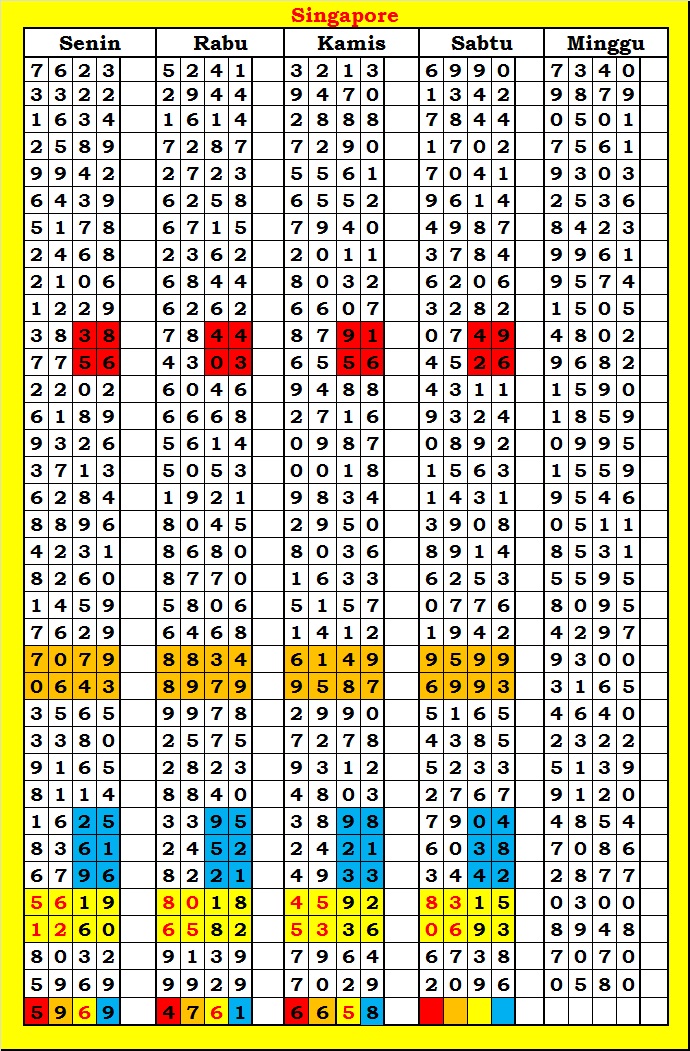 MASTER SINGAPURA Rabu, 04-03-2026 Merupakan Prediksi Otomatis yang menggabungkan Metode Kalender Togel Dengan Rumus-rumus kontrol yang sudah terbukti keakuratanya.Gunakan Aplikasi Rekap untuk mendapatkan LN TOP. Harap Maklum Jika kadang meleset MASTER SINGAPURA kita. Jadikan ini sebagai perbandingan saja dan tetap UPS