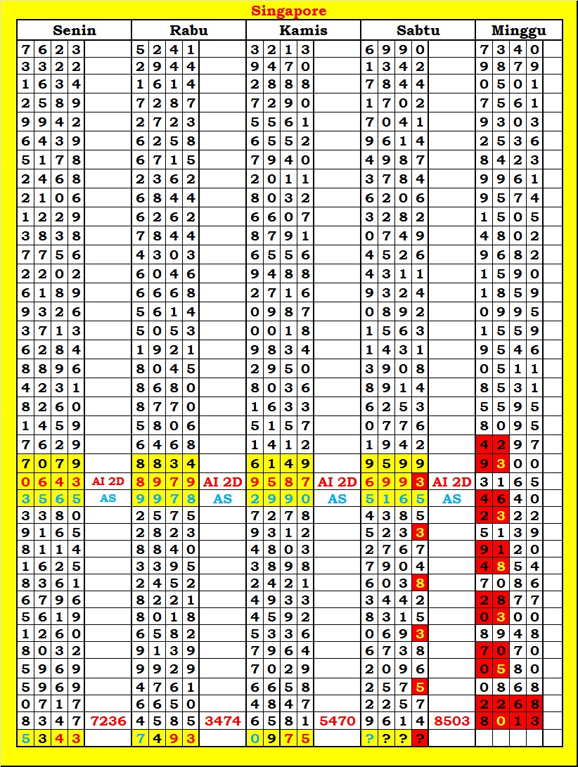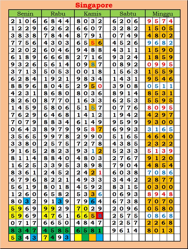MASTER SINGAPURA Senin, 02-03-2026 Merupakan Prediksi Otomatis yang menggabungkan Metode Kalender Togel Dengan Rumus-rumus kontrol yang sudah terbukti keakuratanya.Gunakan Aplikasi Rekap untuk mendapatkan LN TOP. Harap Maklum Jika kadang meleset MASTER SINGAPURA kita. Jadikan ini sebagai perbandingan saja dan tetap UPS