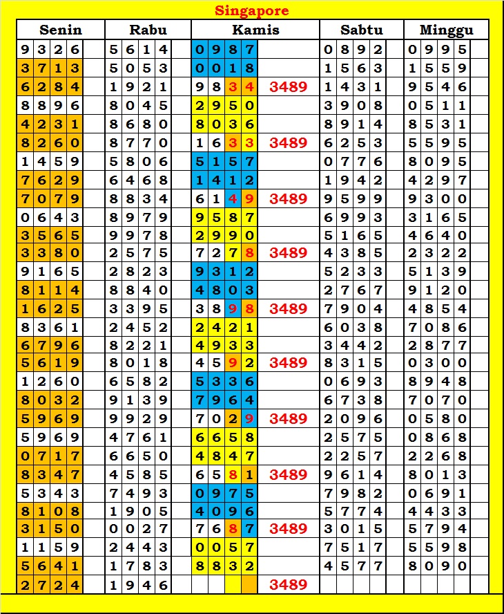 MASTER SINGAPURA Senin, 02-03-2026 Merupakan Prediksi Otomatis yang menggabungkan Metode Kalender Togel Dengan Rumus-rumus kontrol yang sudah terbukti keakuratanya.Gunakan Aplikasi Rekap untuk mendapatkan LN TOP. Harap Maklum Jika kadang meleset MASTER SINGAPURA kita. Jadikan ini sebagai perbandingan saja dan tetap UPS