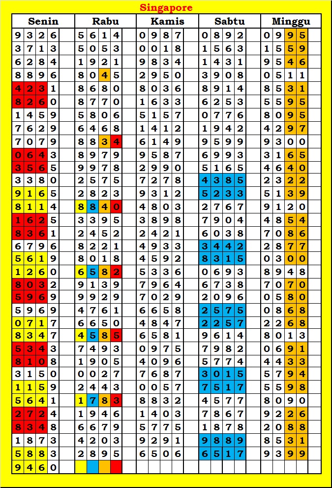 MASTER SINGAPURA Senin, 02-03-2026 Merupakan Prediksi Otomatis yang menggabungkan Metode Kalender Togel Dengan Rumus-rumus kontrol yang sudah terbukti keakuratanya.Gunakan Aplikasi Rekap untuk mendapatkan LN TOP. Harap Maklum Jika kadang meleset MASTER SINGAPURA kita. Jadikan ini sebagai perbandingan saja dan tetap UPS
