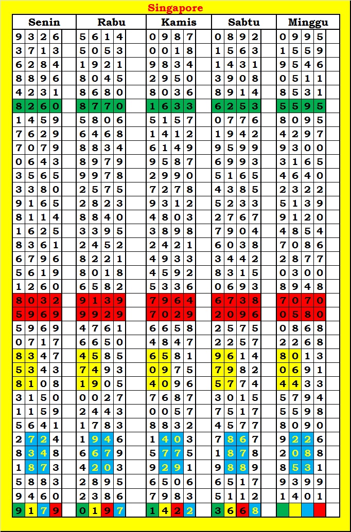 MASTER SINGAPURA Senin, 02-03-2026 Merupakan Prediksi Otomatis yang menggabungkan Metode Kalender Togel Dengan Rumus-rumus kontrol yang sudah terbukti keakuratanya.Gunakan Aplikasi Rekap untuk mendapatkan LN TOP. Harap Maklum Jika kadang meleset MASTER SINGAPURA kita. Jadikan ini sebagai perbandingan saja dan tetap UPS