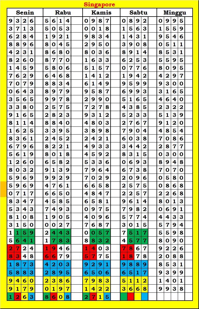 MASTER SINGAPURA Senin, 02-03-2026 Merupakan Prediksi Otomatis yang menggabungkan Metode Kalender Togel Dengan Rumus-rumus kontrol yang sudah terbukti keakuratanya.Gunakan Aplikasi Rekap untuk mendapatkan LN TOP. Harap Maklum Jika kadang meleset MASTER SINGAPURA kita. Jadikan ini sebagai perbandingan saja dan tetap UPS