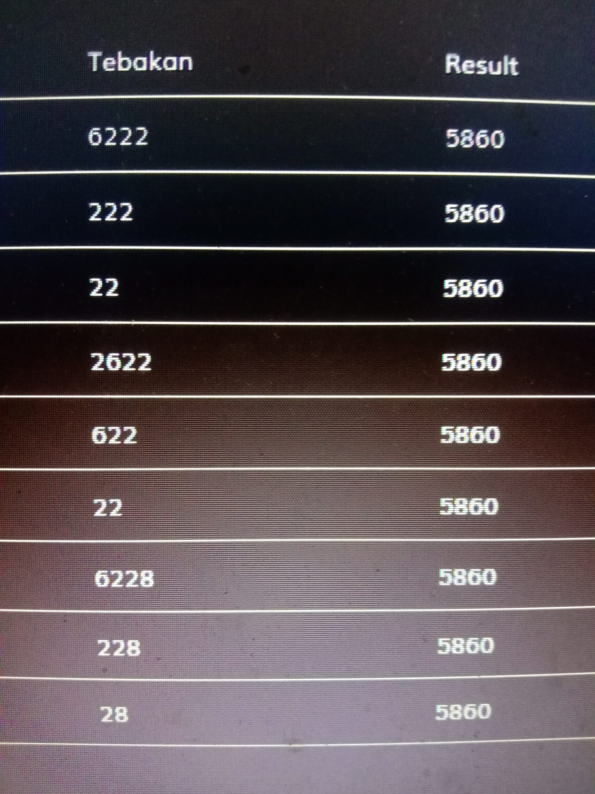 Klu itu yg keluar 5860 yo cuma dpt 3d.