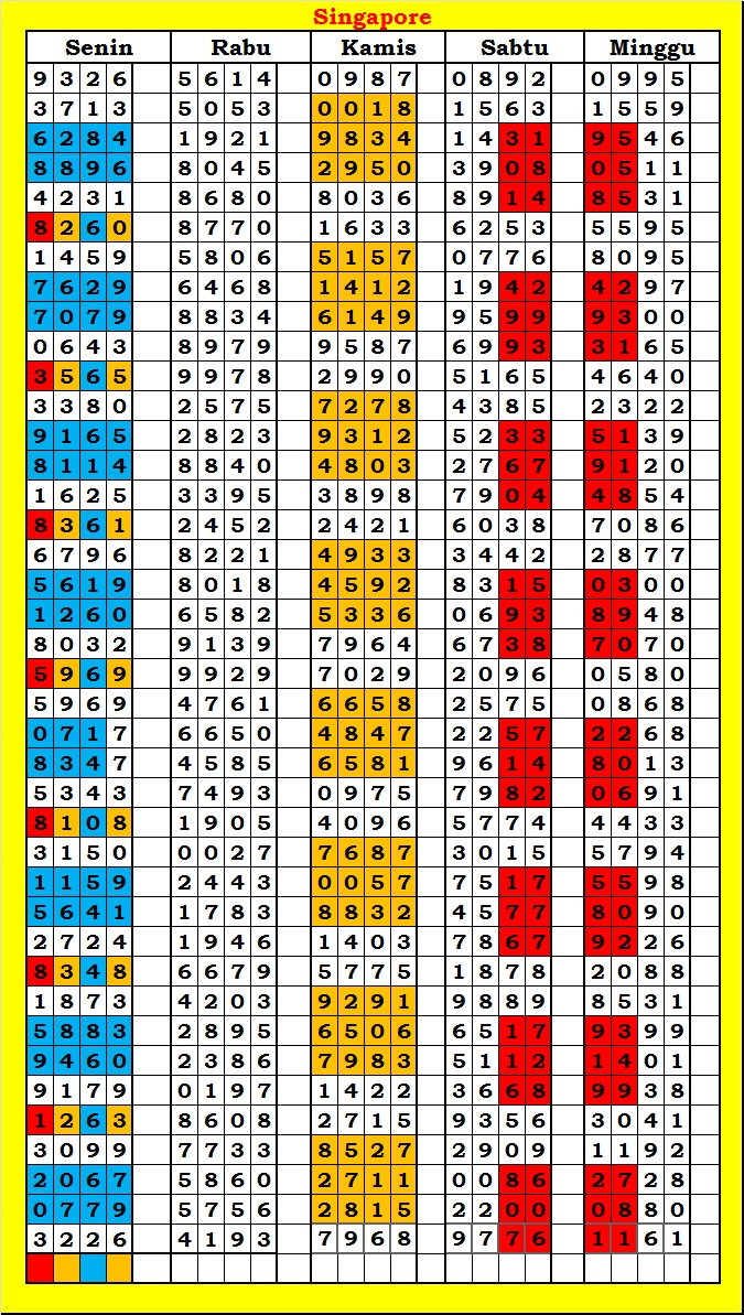 MASTER SINGAPURA Minggu, 01-03-2026 Merupakan Prediksi Otomatis yang menggabungkan Metode Kalender Togel Dengan Rumus-rumus kontrol yang sudah terbukti keakuratanya.Gunakan Aplikasi Rekap untuk mendapatkan LN TOP. Harap Maklum Jika kadang meleset MASTER SINGAPURA kita. Jadikan ini sebagai perbandingan saja dan tetap UPS