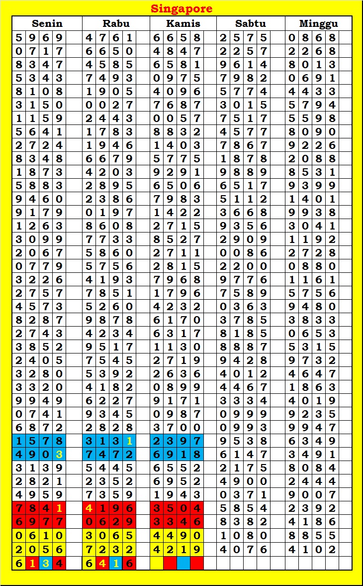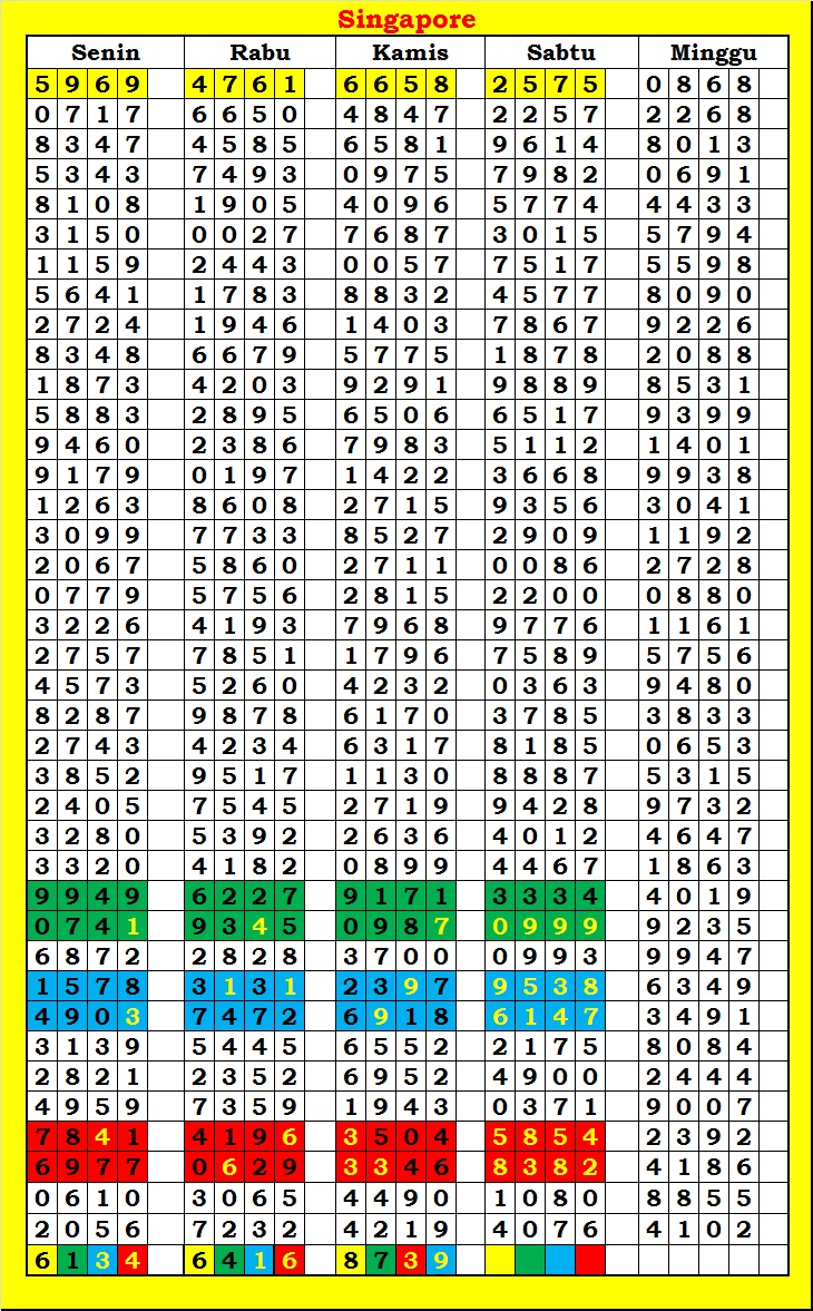MASTER SINGAPURA Sabtu, 28-02-2026 Merupakan Prediksi Otomatis yang menggabungkan Metode Kalender Togel Dengan Rumus-rumus kontrol yang sudah terbukti keakuratanya.Gunakan Aplikasi Rekap untuk mendapatkan LN TOP. Harap Maklum Jika kadang meleset MASTER SINGAPURA kita. Jadikan ini sebagai perbandingan saja dan tetap UPS
