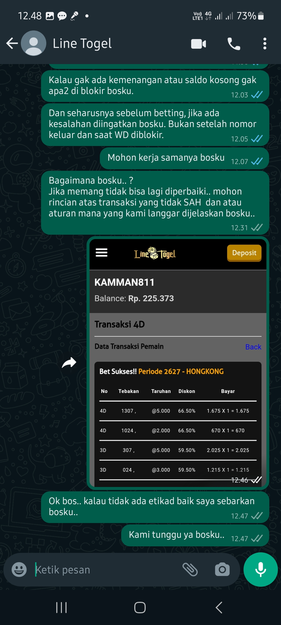 semua postingan komentar SARA, politik, saling menghujat serta saling merendahkan antara prediktor satu dengan yang lainnya jika kami lagi OL mohon maaf langsung kami hapus dan jika telah diperingatkan masih mengulang kami lock datanya