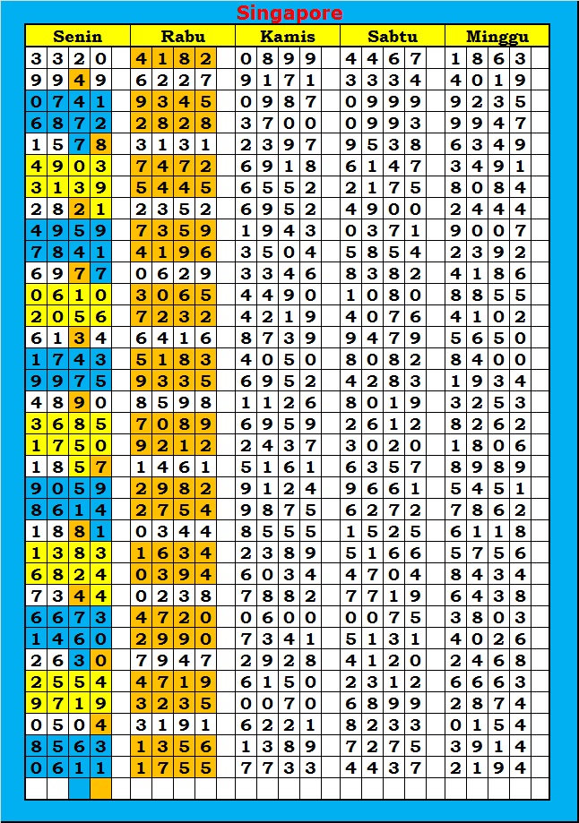 MASTER SINGAPURA Kamis, 26-02-2026 Merupakan Prediksi Otomatis yang menggabungkan Metode Kalender Togel Dengan Rumus-rumus kontrol yang sudah terbukti keakuratanya.Gunakan Aplikasi Rekap untuk mendapatkan LN TOP. Harap Maklum Jika kadang meleset MASTER SINGAPURA kita. Jadikan ini sebagai perbandingan saja dan tetap UPS