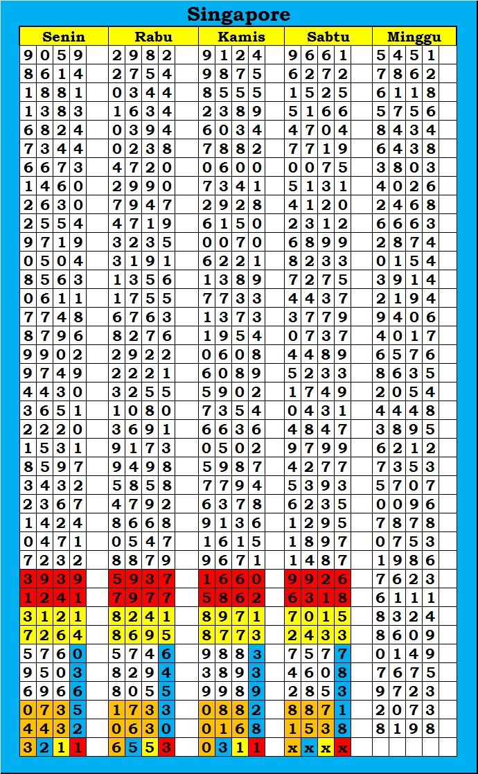 MASTER SINGAPURA Rabu, 25-02-2026 Merupakan Prediksi Otomatis yang menggabungkan Metode Kalender Togel Dengan Rumus-rumus kontrol yang sudah terbukti keakuratanya.Gunakan Aplikasi Rekap untuk mendapatkan LN TOP. Harap Maklum Jika kadang meleset MASTER SINGAPURA kita. Jadikan ini sebagai perbandingan saja dan tetap UPS