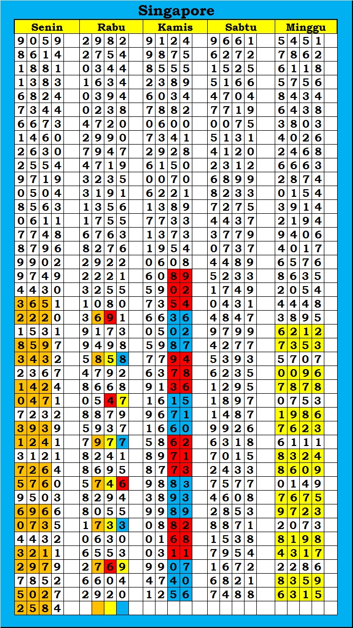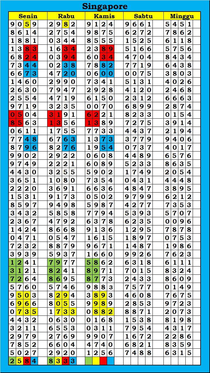 MASTER SINGAPURA Kamis, 26-02-2026 Merupakan Prediksi Otomatis yang menggabungkan Metode Kalender Togel Dengan Rumus-rumus kontrol yang sudah terbukti keakuratanya.Gunakan Aplikasi Rekap untuk mendapatkan LN TOP. Harap Maklum Jika kadang meleset MASTER SINGAPURA kita. Jadikan ini sebagai perbandingan saja dan tetap UPS
