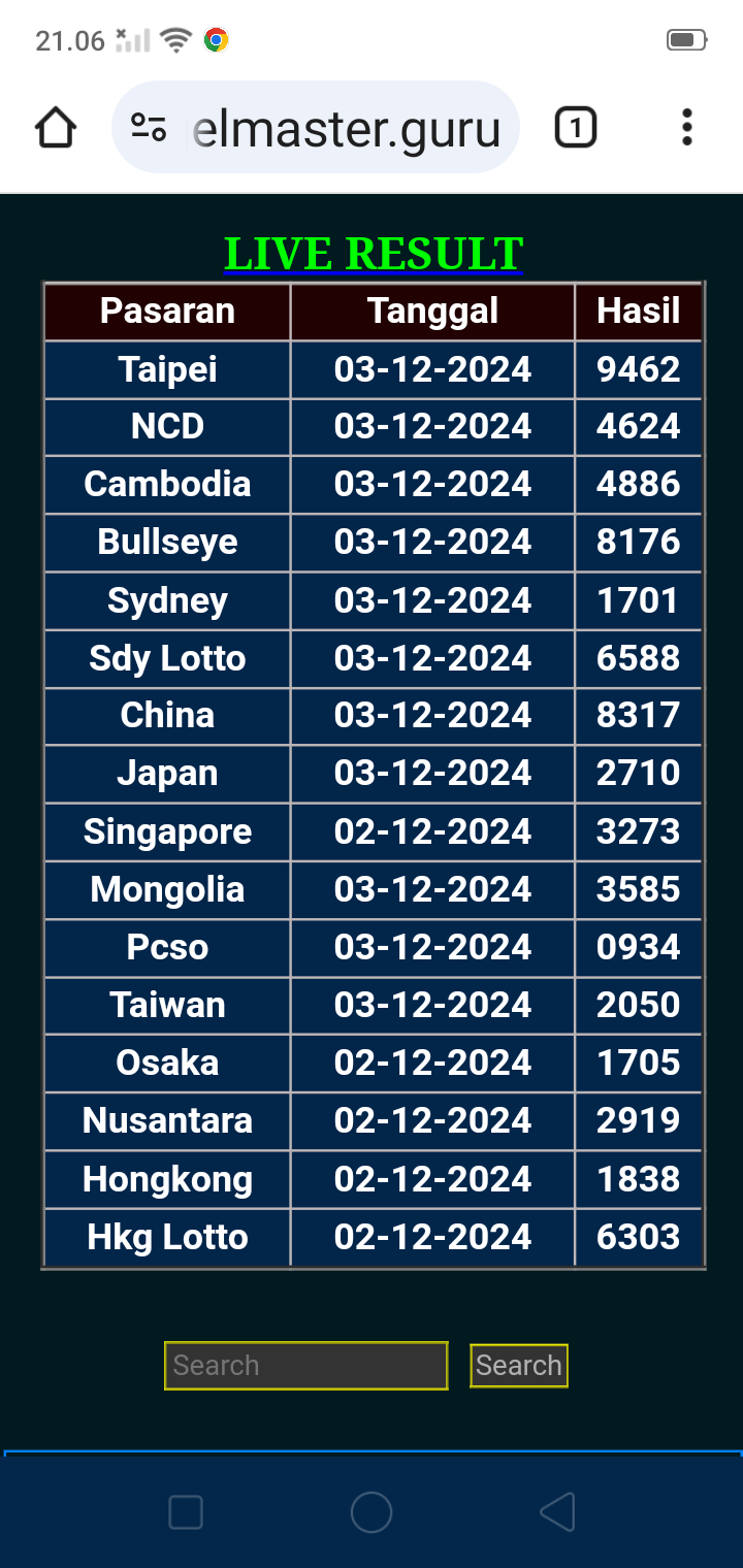 MASTER TAIWAN Kamis, 26-02-2026 Merupakan Prediksi Otomatis yang menggabungkan Metode Kalender Togel Dengan Rumus-rumus kontrol yang sudah terbukti keakuratanya.Gunakan Aplikasi Rekap untuk mendapatkan LN TOP. Harap Maklum Jika kadang meleset MASTER TAIWAN kita. Jadikan ini sebagai perbandingan saja dan tetap UPS